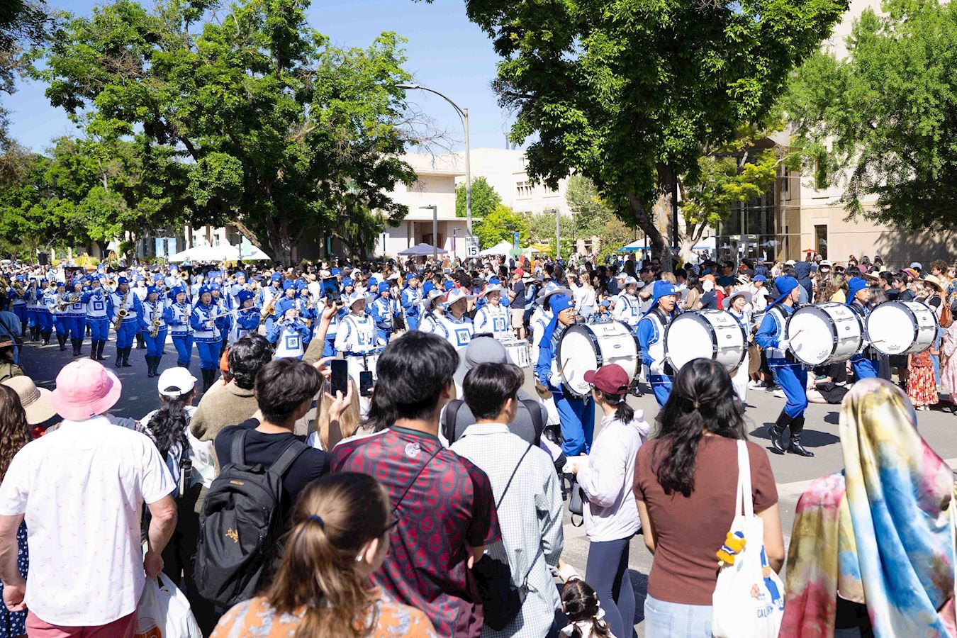 Spectators cheer the Falun Dafa entry in the 111th UC Davis Picnic Day Parade on April 12.