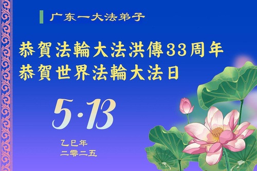 (Minghui.org) May 13, 2025, marks the 26th World Falun Dafa Day and the 33rd anniversary of the public introduction of Falun Dafa. The day is also the birthday of Master Li, the founder of Falun Dafa. Practitioners around the world are sending their heartfelt greetings to celebrate this grand occasion and honor revered Master on this special day.