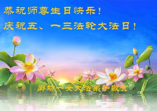 Falun Dafa Practitioners from Langfang City Wish Revered Master a Happy Birthday and Celebrate World Falun Dafa Day!