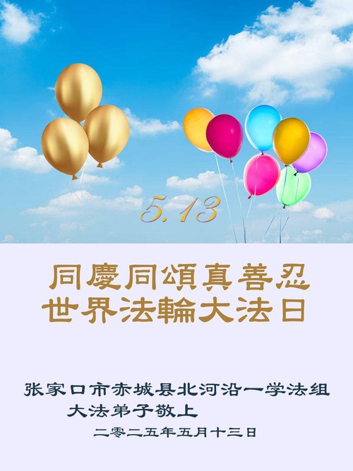 Falun Dafa Practitioners from Zhangjiakou City Wish Revered Master a Happy Birthday and Celebrate World Falun Dafa Day!