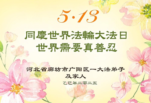 Falun Dafa Practitioners from Langfang City Wish Revered Master a Happy Birthday and Celebrate World Falun Dafa Day!