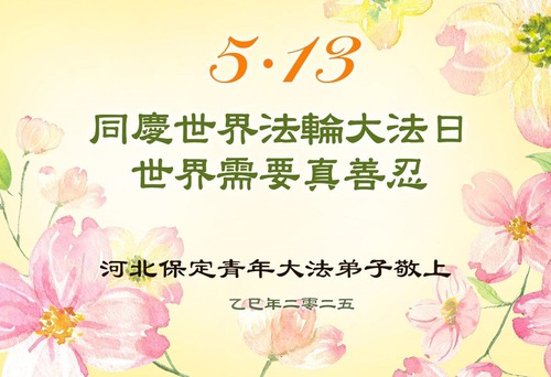 Falun Dafa Practitioners from Baoding City Wish Revered Master a Happy Birthday and Celebrate World Falun Dafa Day!