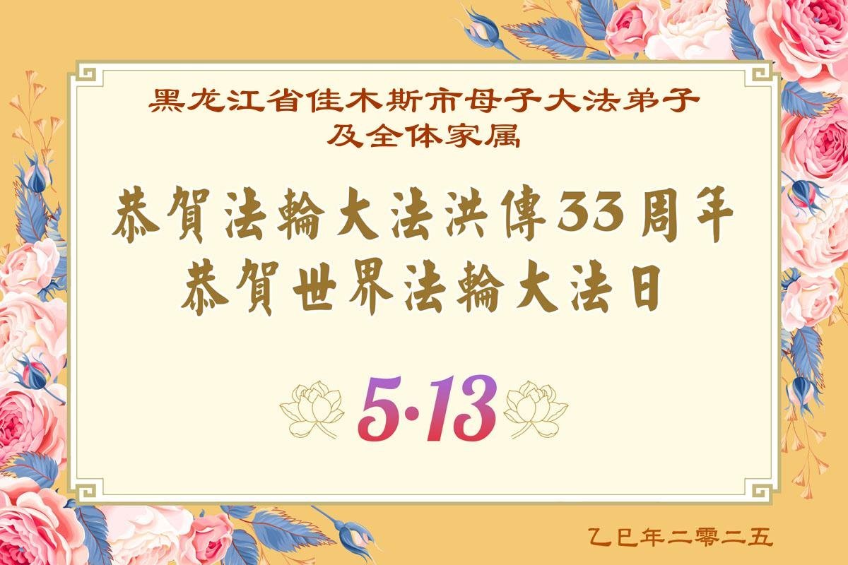 Falun Dafa Practitioners from Jiamusi City Wish Revered Master a Happy Birthday and Celebrate World Falun Dafa Day!