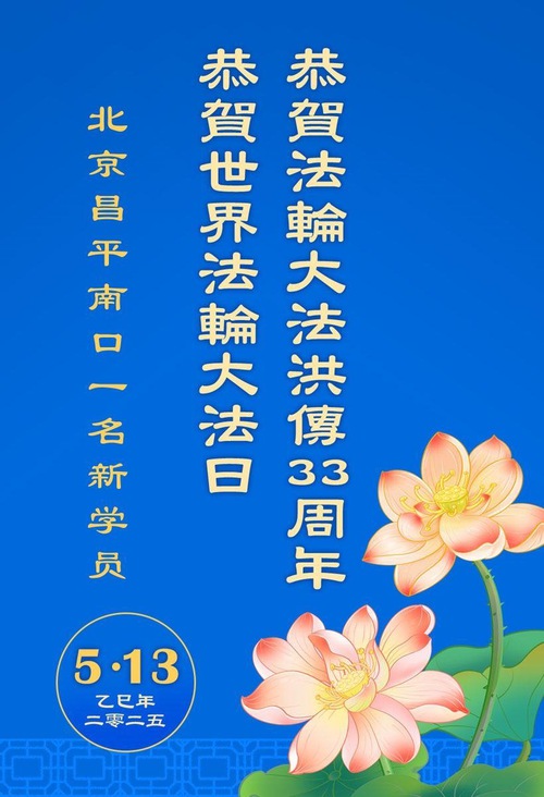 (Minghui.org) To celebrate World Falun Dafa Day, many newcomers to Falun Dafa sent their greetings to wish revered Master Li a happy birthday and to celebrate the 33rd anniversary of Falun Dafa’s public introduction.