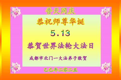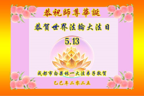 Falun Dafa Practitioners from Chengdu City Wish Revered Master a Happy Birthday and Celebrate World Falun Dafa Day!