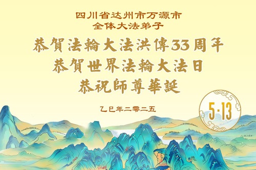 (Minghui.org) May 13, 2025, marks the 26th World Falun Dafa Day and the 33rd anniversary of the public introduction of Falun Dafa. The day is also the birthday of Master Li Hongzhi, the founder of Falun Dafa. Practitioners around the world are sending their heartfelt greetings to celebrate this grand occasion and honor revered Master on this special day.
