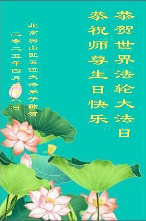 Falun Dafa Practitioners from Beijing Wish Revered Master a Happy Birthday and Celebrate World Falun Dafa Day!