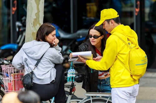 Passersby signed a petition calling for an end to the persecution and supporting Falun Dafa practitioners.