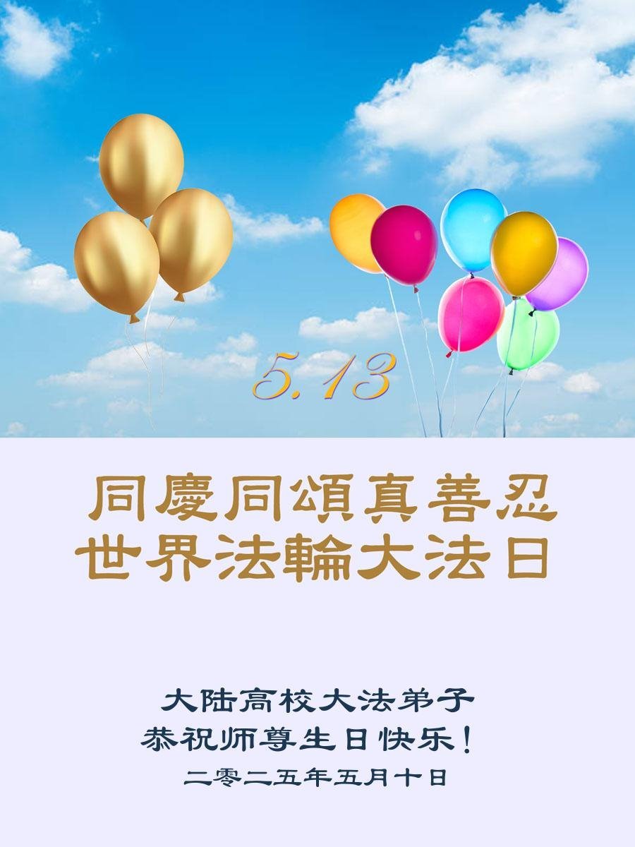 (Minghui.org) May 13, 2025, marks the 26th World Falun Dafa Day and the 33rd anniversary of the public introduction of Falun Dafa. The day is also the birthday of Master Li, the founder of Falun Dafa. Practitioners around the world send their heartfelt greetings to celebrate this grand occasion and honor revered Master on this special day.