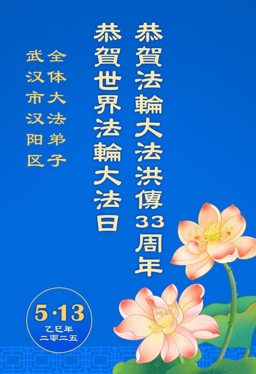 (Minghui.org) May 13, 2025, marks the 26th World Falun Dafa Day and the 33rd anniversary of the public introduction of Falun Dafa. The day is also the birthday of Master Li Hongzhi, the founder of Falun Dafa. Practitioners around the world send their heartfelt greetings to celebrate this grand occasion and honor revered Master on this special day.