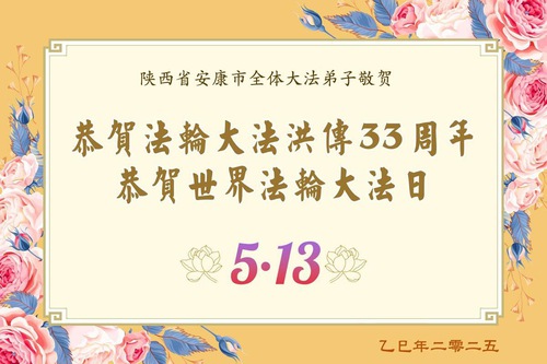 Falun Dafa Practitioners in Shaanxi Province Wish Revered Master a Happy Birthday and Celebrate World Falun Dafa Day!