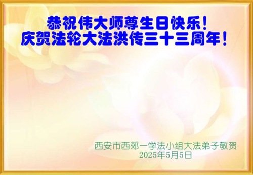 (Minghui.org) May 13, 2025, marks the 26th World Falun Dafa Day and the 33rd anniversary of the public introduction of Falun Dafa. The day is also the birthday of Master Li, the founder of Falun Dafa. Practitioners around the world convey their heartfelt greetings to celebrate this grand occasion and honor revered Master on this special day.
