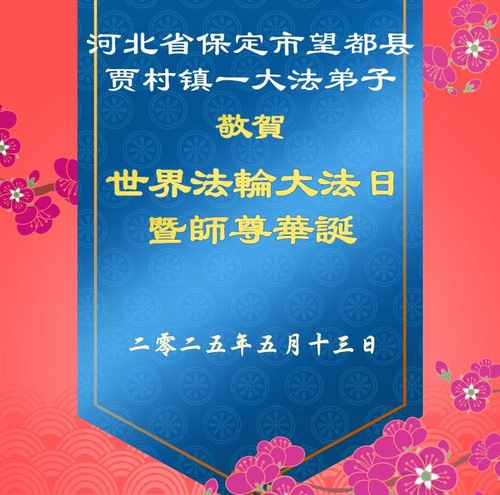 Falun Dafa Practitioners in Baoding City Wish Revered Master a Happy Birthday and Celebrate World Falun Dafa Day!