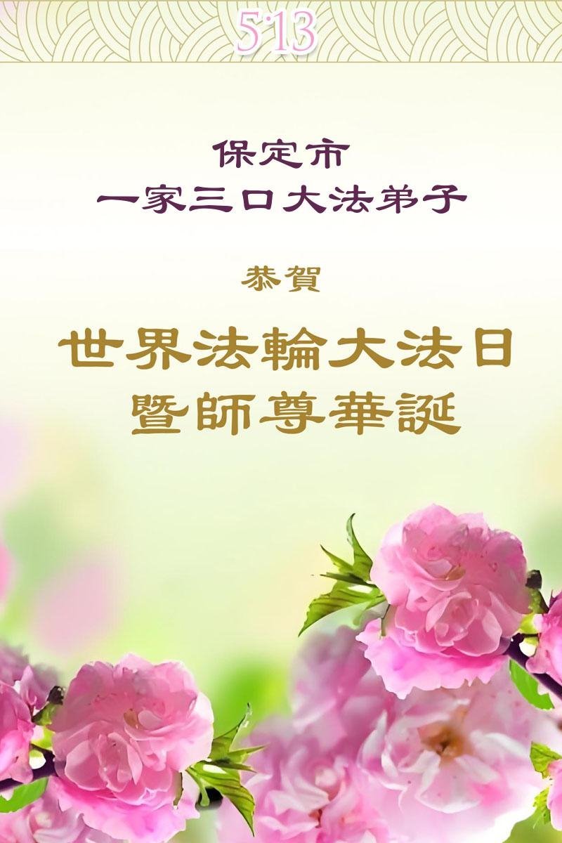 In this report, we present a selection of the 21 greetings sent from Falun Dafa practitioners in Baoding City, Hebei Province, China.