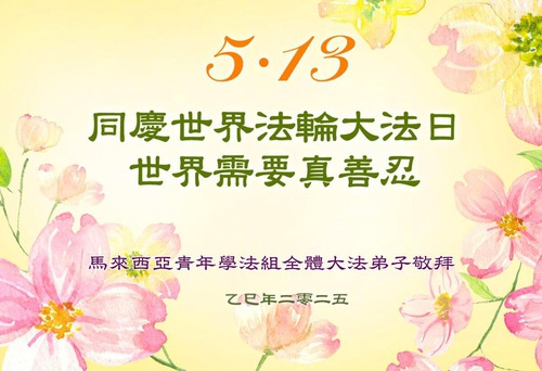 A Falun Dafa Practitioner in Kuala Lumpur, Malaysia, Celebrates World Falun Dafa Day and Respectfully Wishes Benevolent Great Master a Happy Birthday! Master, You Have Suffered Hardship!