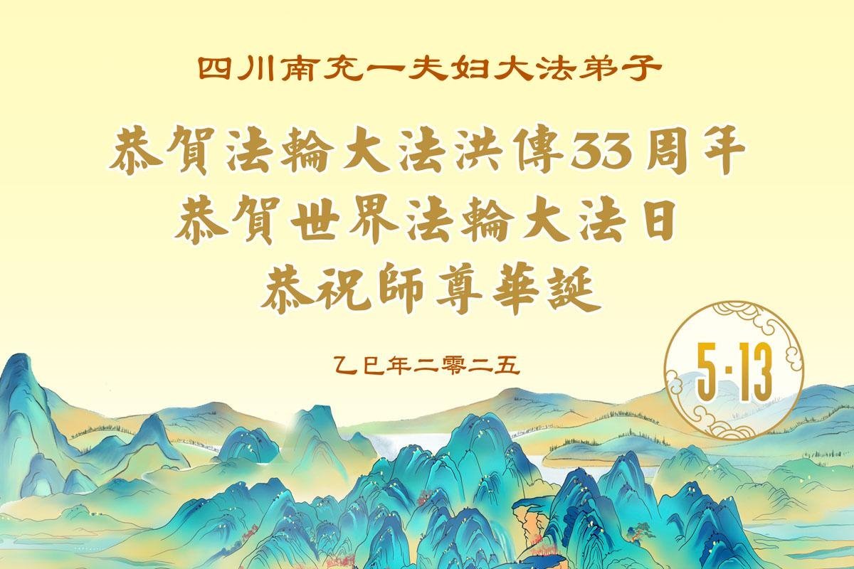(Minghui.org) May 13, 2025, marks the 26th World Falun Dafa Day and the 33rd anniversary of the public introduction of Falun Dafa. It is also the birthday of Master Li Hongzhi, the founder of Falun Dafa. Practitioners around the world are sending their heartfelt greetings to celebrate this grand occasion and honor revered Master on this special day.