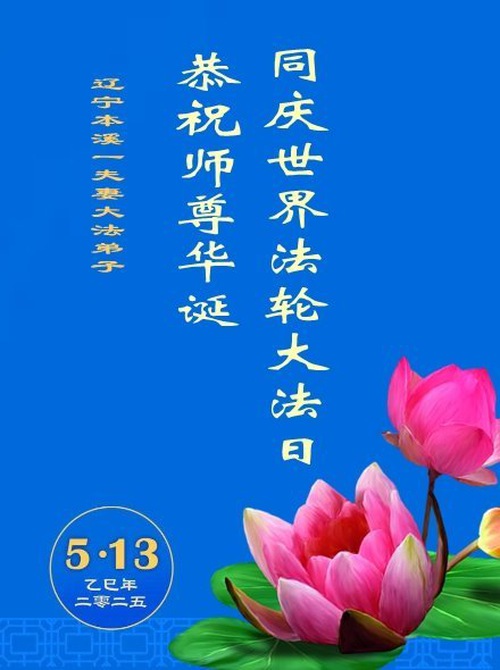 Falun Dafa Practitioners from Benxi City Wish Revered Master a Happy Birthday and Celebrate World Falun Dafa Day!