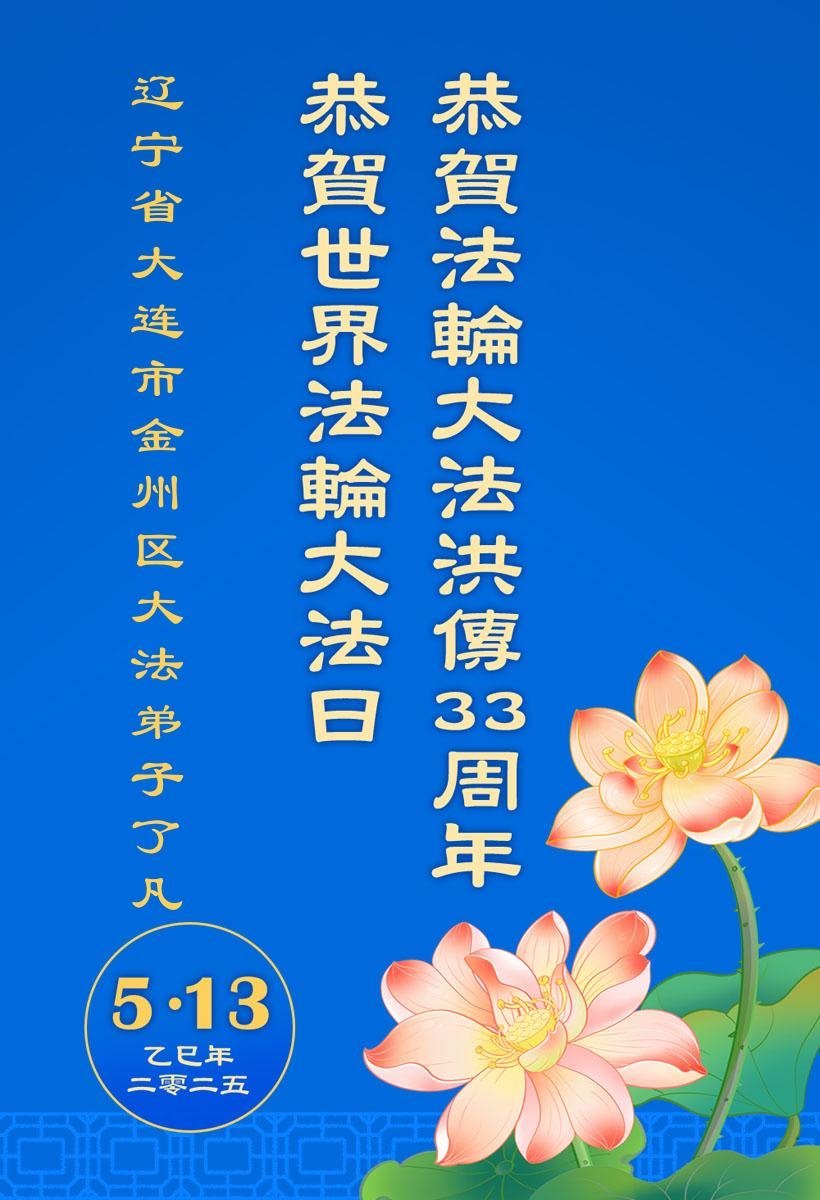 Falun Dafa Practitioners from Dalian City Wish Revered Master a Happy Birthday and Celebrate World Falun Dafa Day!