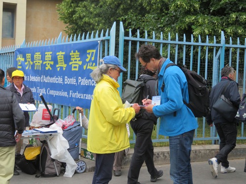 Mr. Mario Lopez from Italy is a theater director and works in Paris. He talked to practitioners during the event on June 7 and signed the petition to end the persecution. He said, “Everyone has the right to practice their belief.
