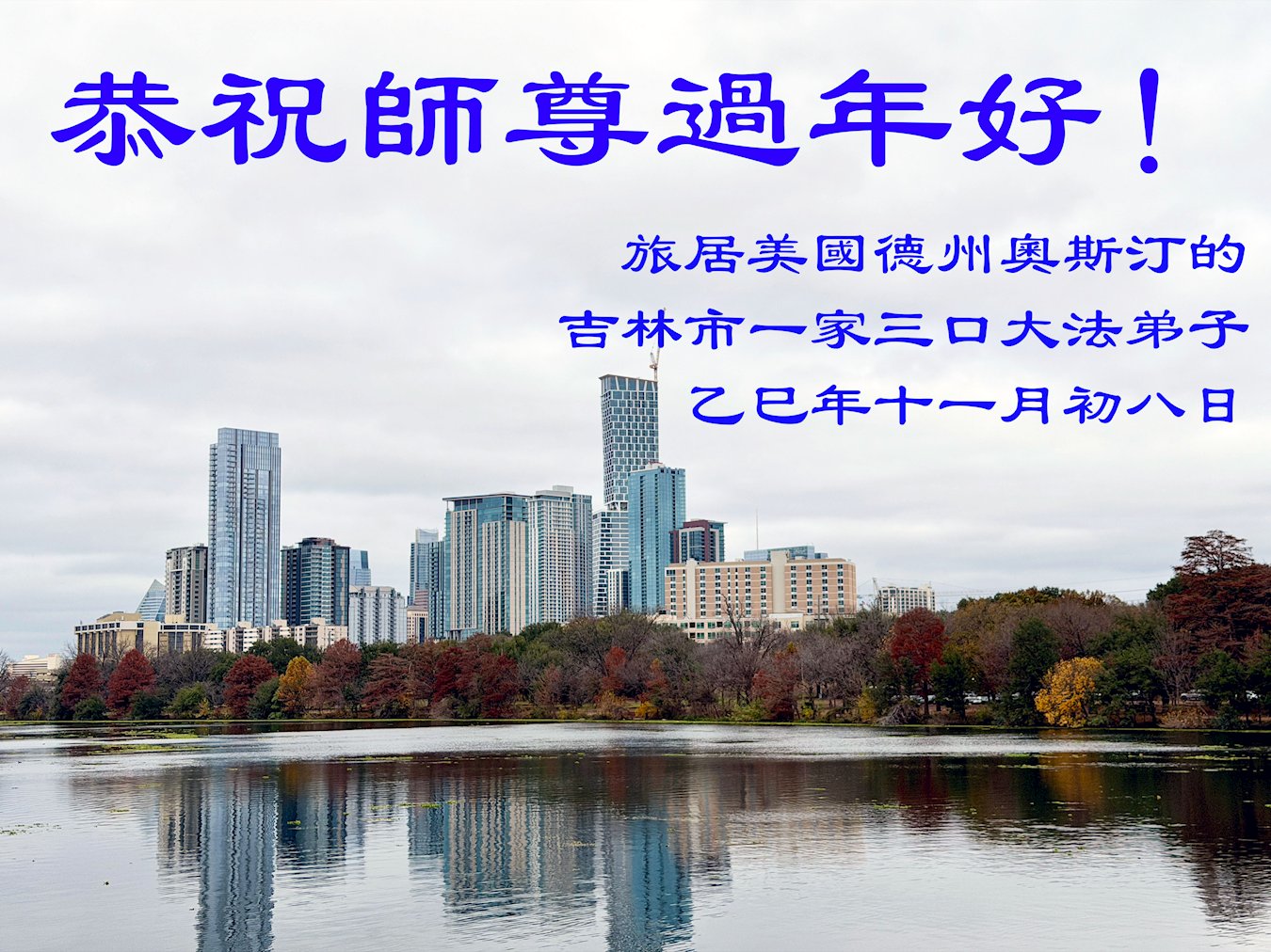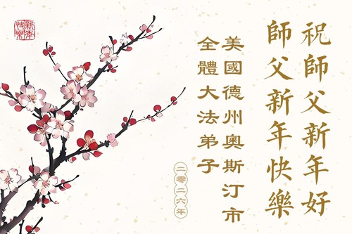 A Family of Three Practitioners from Jilin City, Jilin Province, China, Who Now Live in Austin, Texas, Respectfully Wish Master a Happy New Year!