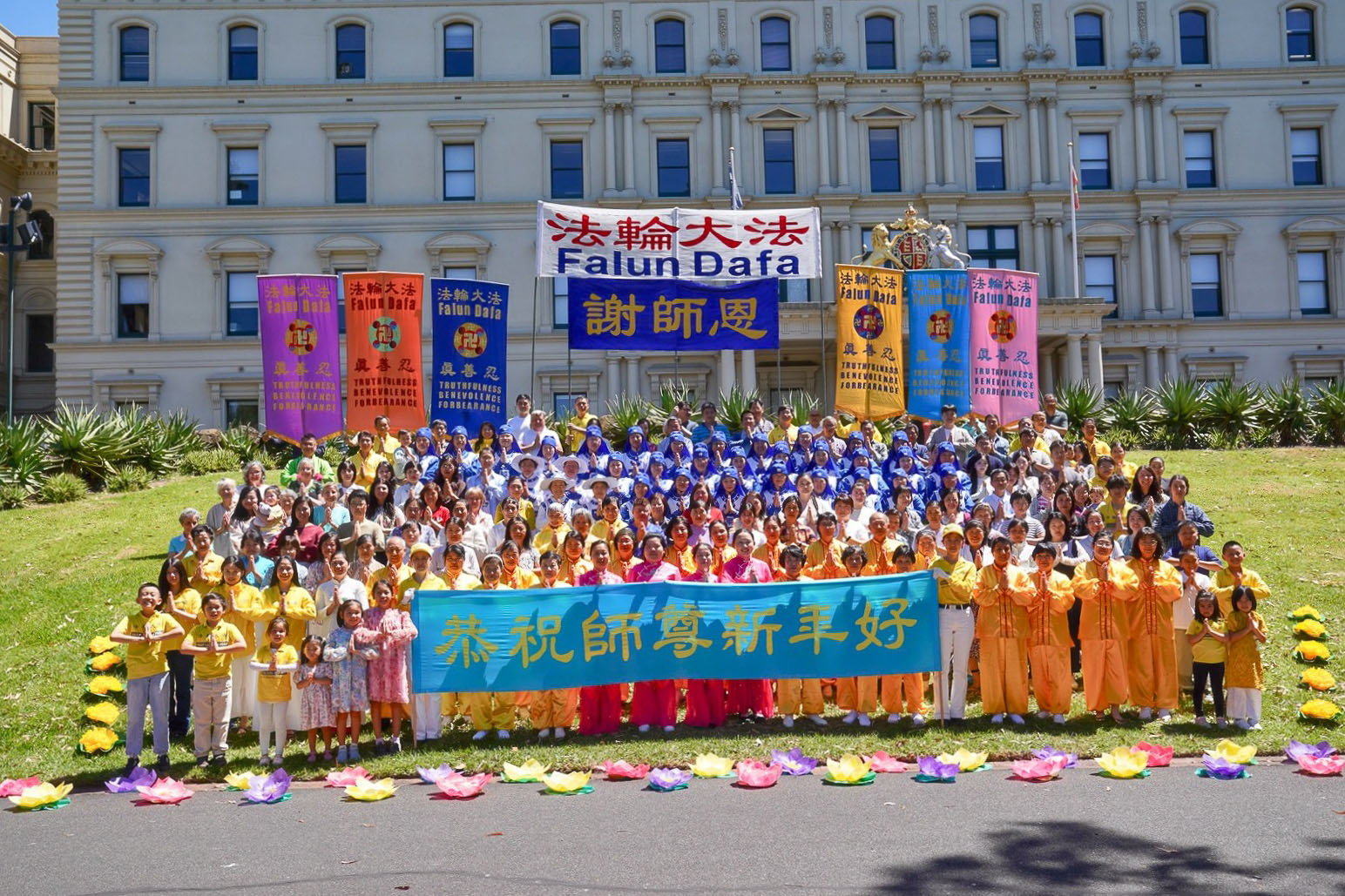 Practitioners wished Master Li a happy Chinese New Year during their celebration at Treasury Gardens in Melbourne