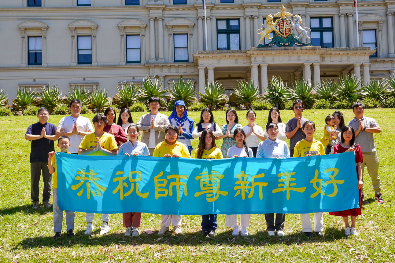 (Minghui.org) Practitioners held an event at the Treasury Gardens in Melbourne the first weekend in February to celebrate the upcoming Chinese New Year. They wished to thank the founder of Falun Dafa, Master Li, for the benefits they received from following the practice.