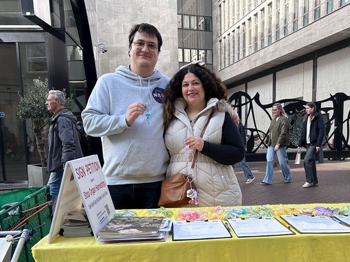 People line up to sign the petition calling for an end to the CCP’s forced organ harvesting.Gomydo Marqus and his wife.