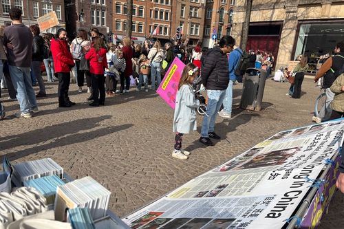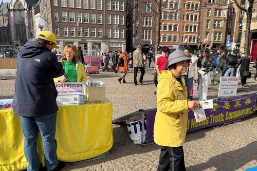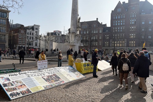 (Minghui.org) Falun Dafa practitioners held activities on Dam Square in Amsterdam to introduce the spiritual practice on March 8, 2026. They also raised awareness of the Chinese Communist Party’s (CCP) persecution.