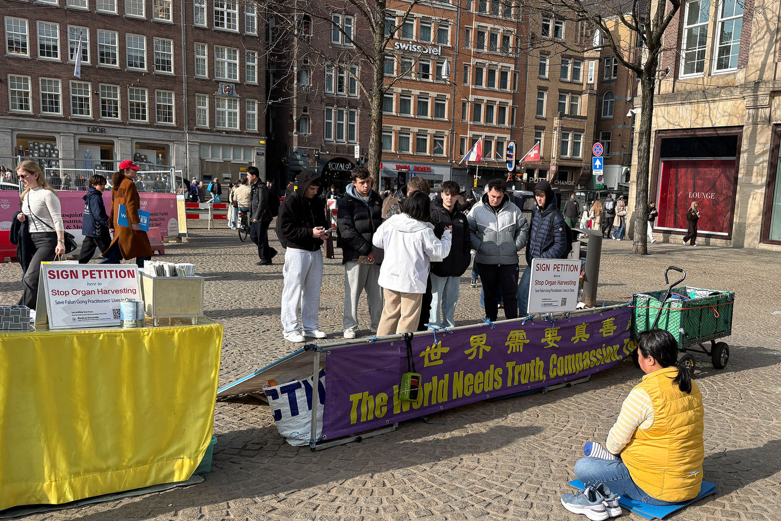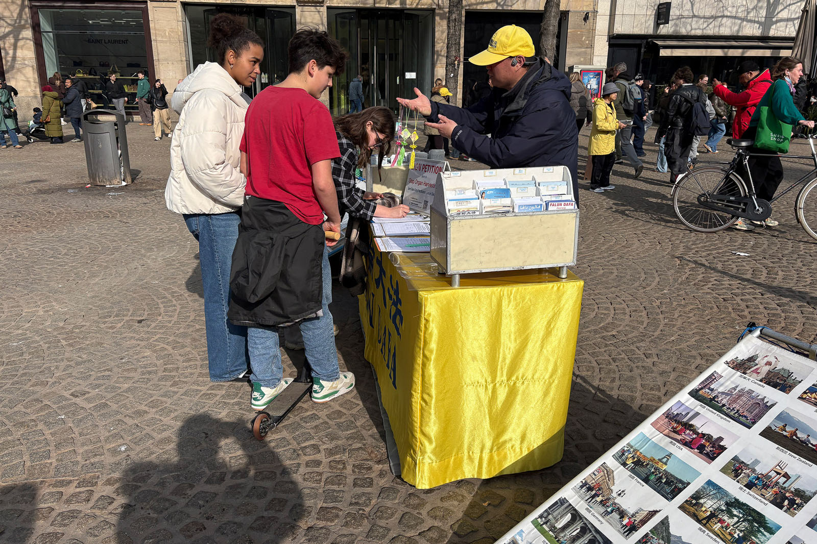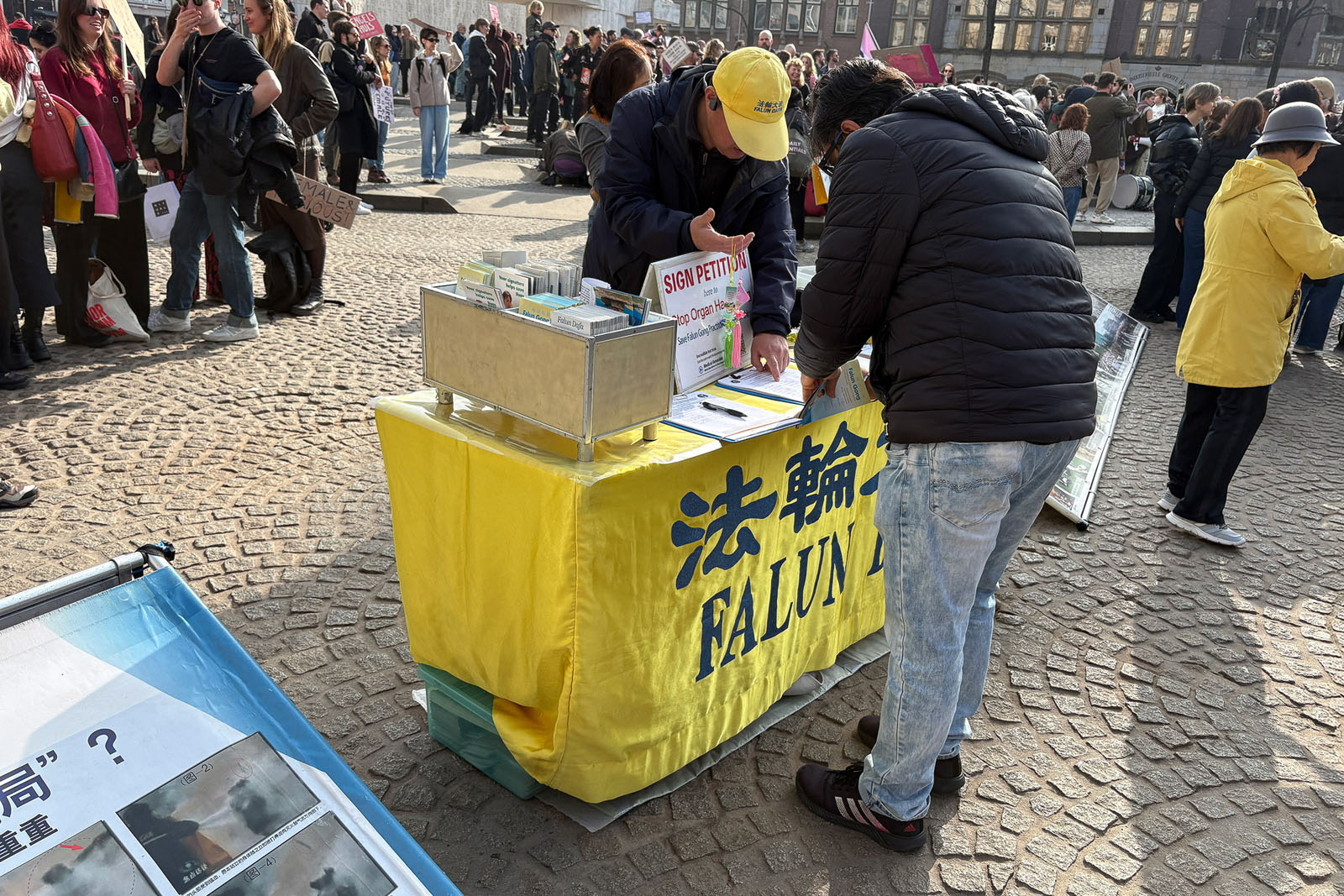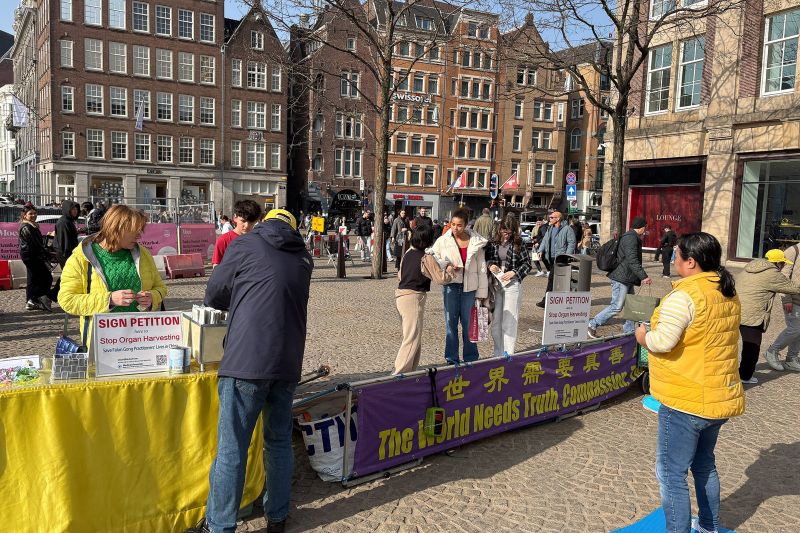 People learned about Falun Dafa and the CCP’s persecution during an event on Dam Square in Amsterdam on March 8, 2026.