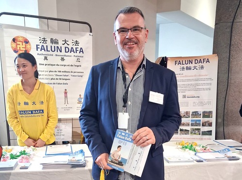 Claude Vernet, a foot reflexology therapist, wished to know more about Falun Dafa after talking to a practitioner and said they should introduce the practice at an organic products exhibition. “Health is not limited to the physical body, it also shows up in emotional and spiritual levels. Falun Dafa provides an alternative way of thinking, and can draw the attention of many people,” he said.