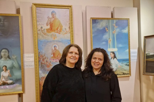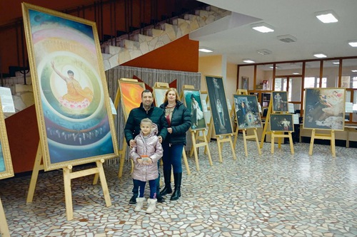 The Sestrimski family visited the exhibition and was interested in learning about Falun Dafa. Maria Sestrimska shared her understanding of the painting Setting the Cosmos in Motion—one of her favorites: “I think it depicts the purification of the soul through all levels while cultivating.”