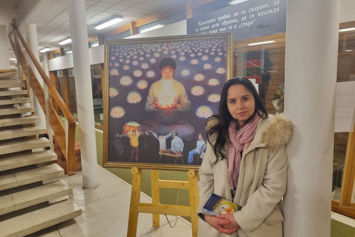 While Kalina was handing out flyers for the exhibition on opening day, she happened to meet Elza Baldzhiyska, who was visiting her hometown. “The moment Ms. Baldzhiyska took the flyer and started to enter the museum, she exclaimed, ‘But this is Falun Dafa!’” said Kalina.