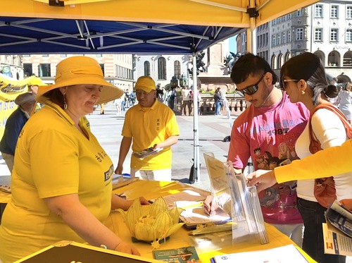 Through the practitioners’ consistent efforts, more people learned about the situation in China. Johanna, an artist who walked by the event at Marienplatz, said she had previously heard about the persecution. She praised the event and said she hopes the persecution will end soon.