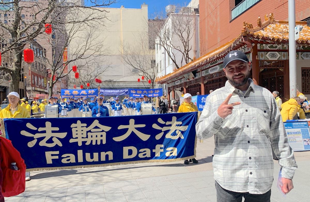 Joel, a drummer from the National Circus School of Canada, said he was attracted by the music and stayed to listen to the speeches. Although he knew the CCP mistreated Chinese people, this was first time he’d heard about the persecution of Falun Gong.